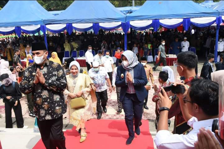 EKSISNEWS.COM, Panyabungan – Bupati Mandailing Natal (Madina) HM Jafar Sukhairi Nasution dan Wakil Bupati Atika Azmi Utammi Nasution membuka pagelaran seni budaya dan ekspo ekonomi kreatif di halaman Masjid Agung Nur Ala Nur, Desa Parbangunan, Kecamatan Panyabungan, Rabu (9/3/2022).