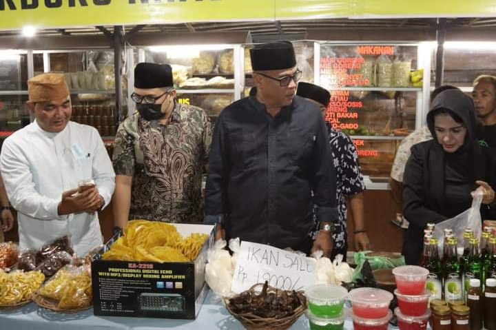EKSISNEWS.COM, Panyabungan – Bupati Mandailing Natal (Madina) HM Jafar Sukhairi Nasution membuka kegiatan Warkop Dewan Usaha Kecil dan Menengah (UKM) Madina dan Bazar Ramadan di Kantor Korda Dewan UKM Madina, Jl Darul Ikhlas, Kelurahan Dalan Lidang, Panyabungan, Ahad (10/4/2022).