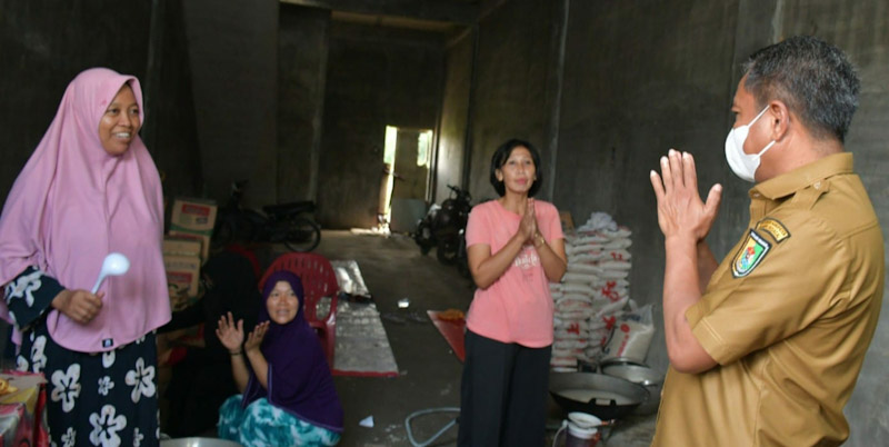 Ia pun menceritakan bahwa Bupati hadir ke posko pagi-pagi untuk memberikan bahan makanan yang di masak hari ini.