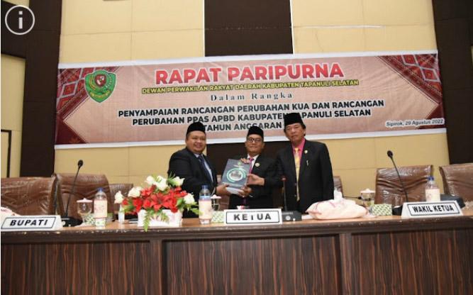 Rancangan Perubahan KUA dan Perubahan PPAS TA 2022 disampaikan Bupati pada sidang paripurna di Gedung DPRD Tapsel, Jalan Prof. Lafran Pane, Sipirok, Senin (29/08/2022).