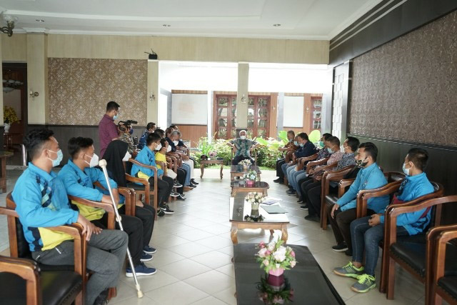 EKSISNEWS.COM, Kisaran – Bupati Asahan H. Surya, BSc didampingi Kepala Dinas Kepemudaan, Olahraga dan Pariwisata, Jum’at (30/04/2021) menerima Audiensi National Paralympic Commite (NPC) Kabupaten Asahan yang berlangsung di Rumah Dinas Bupati Asahan.
