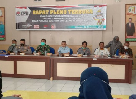 EKSISNEWS.COM, Kisaran – Rapat Pleno hasil perolehan Pemilihan Kepala Daerah dan Wakil Kepala Daerah Kabupaten Asahan untuk tingkat Panitia Kecamatan (PPK) Kota Kisaran Timur (Kistim) yang mulai dilaksanakan di Aula Kantor Camat setempat, Sabtu (12/12/2020).