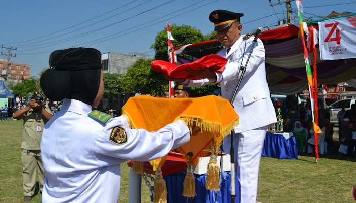 Camat Percut Sei Tuan Insfektur Upacara Peringatan Detik-Detik Proklamasi Ke-74