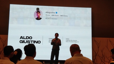 Usai pembukaan, pembicara selanjutnya dari perwakilan konten kreator, yakni Aldo Giustino, dengan memaparkan content : Exageration Skits, Interactive Reels, VFX Comedy & Magic VFX.(ENC-2).