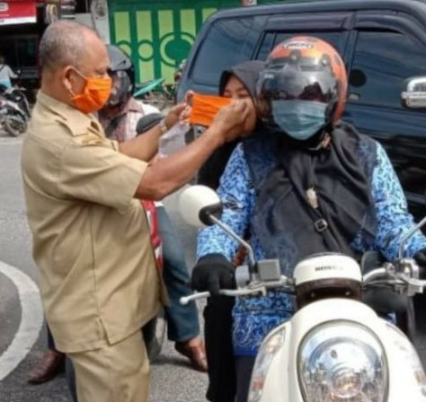 Seperti yang dilaksanakan Badan Kesatuan Bangsa Dan Politik(Kesbangpol) Kabupaten Asahan dengan membagikan 1000 masker secara berkala kepada masyarakat yang melintas di bundaran Tugu Kota Kisaran, Selasa (17/11/2020).