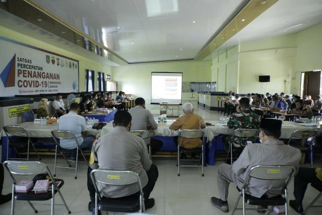 EKSISNEWS.COM, Kisaran – Satuan Tugas Percepatan Penanganan Covid-19 Kabupaten Asahan menggelar Rapat Koordinasi Lintas Sektoral dalam rangka pencegahan dan pengendalian covid-19 di Kabupaten Asahan yang berlangsung di Posko Gugus Tugas Kabupaten Asahan, Jumat (28/05/2021).