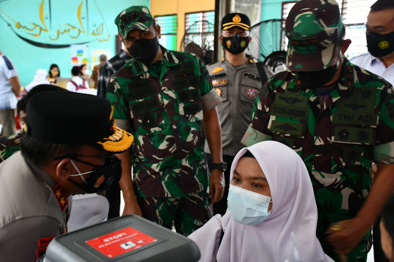 EKSISNEWS.COM, Gunung Sitoli – Pelaksanaan vaksinasi di Kepulauan Nias ditinjau langsung oleh Pangdam I/Bukit Barisan Mayjen TNI Hassanudin, S.I.P, M.M, Kapolda Sumatera Utara Irjen Pol. Drs. R.Z Panca Putra, M.Si. Gubernur Sumatera Utara Edy Rahmayadi, didampingi Komandan Korem 023/KS Kolonel Inf Febriel B. Sikumbang, S.H., M.M pelaksanaan vaksinasi di Kompleks Sekolah MAN Kota Gunungsitoli Kamis (17/02/2022)