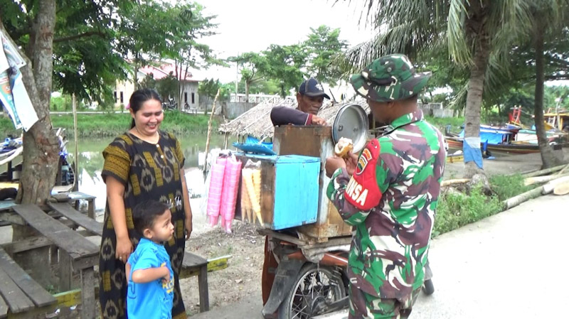 Disaat Tono (61) sang pedang eskrim sedang membuatkan eskrim untuknya terlihat seorang ibu besama anaknya juga memesan eskrim, melihat hal tersebut Agung ingin sekali mentraktir eskrim warga binaanya, Babinsa Koramil Medan Marelan tersebut mengatakan kepada sang penjual es krim agar nanti dia yang membayarkan eskrimnya.