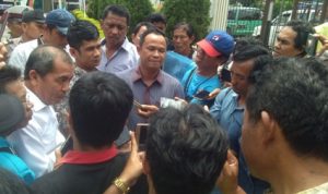 Setelah menyampaikan orasinya, perwakilan KPU Sumut yang terdiri dari Komisioner Mulia Banurea, Sekretaris, DR Abdul Rajab serta Kabag Teknis, Humas dan Hukum, Maruli Pasaribu SH menemui massa.