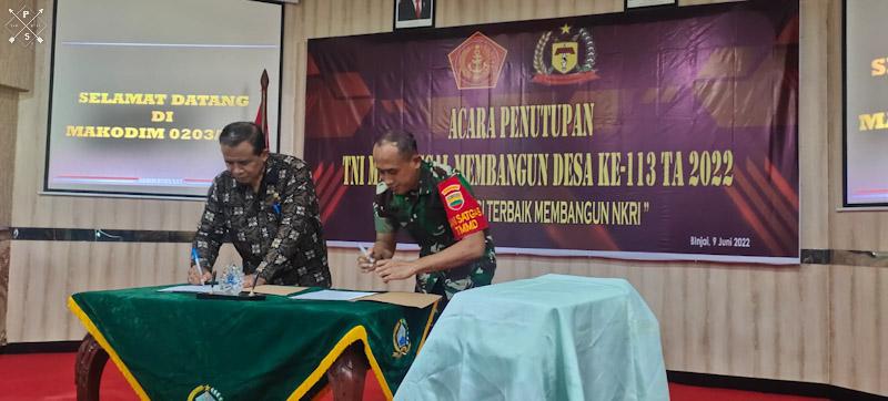 Acara penutupan ditandai dengan penyerahan naskah TMMD 113 yang dilakukan Dandim 0203/Langkat Letkol Inf Wisnu Joko Saputro kepada Plt Bupati Langkat yang mewakili.