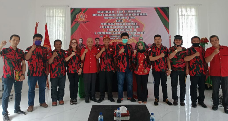 EKSISNEWS.COM,Medan – Dewan Pimpinan Daerah (Depidar) Baladhika Karya Satuan Serbaguna (BKSS) Provinsi Sumatera Utara menggelar Konsolidasi ke II dan silahturahmi, serta penyerahan mandat Lembaga Bantuan Hukum (LBH) BKSS Sumut, Dewan Pimpinan Cabang (Depicab) BKSS Kabupaten Dairi