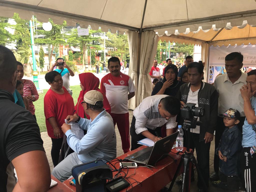 MEDAN, Eksisnews.com – Dinas Kependudukan dan Catatan Sipil (Disdukcapil) Kota Medan menghadirikan sarana perekaman e-KTP di sela-seca acara Car Free Day (CFD) di Lapangan Merdeka Medan, Minggu (7/4) pagi. Langkah ini dilakukan sebagai upaya untuk membantu mempermudah warga yang belum melakukan perekaman e-KTP agar dapat melakukan perekaman. Pasca tiga hari perekaman dilakukan dipastikan e-KTP selesai, warga yang bersangkutan dapat mengambilnya di Kantor Disdukcapil Jalan Iskandar Muda maupun kantor kecamatan sesuai dengan domisili tinggal.