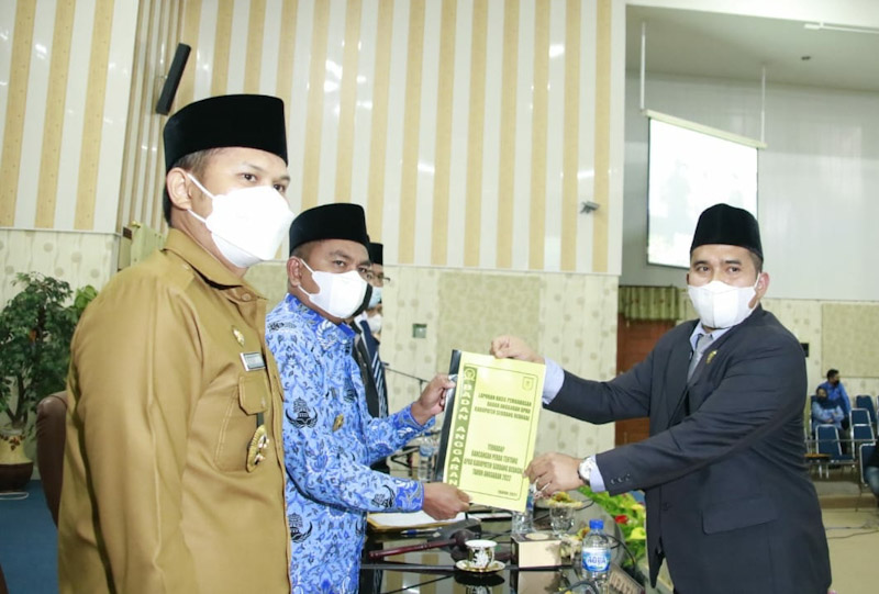 Hadir dalam rapat paripurna, Ketua DPRD Sergai dr. M. Riski Ramadhan Hasibuan, SH, SE, MKn, para Wakil Ketua dan anggota DPRD Sergai, Sekdakab Sergai H. M. Faisal Hasrimy, AP.MAP, para Asisiten, Staf Ahli Bupati, kepala OPD, serta Camat baik yang hadir langsung maupun menyaksikan secara virtual. (ENC-1)