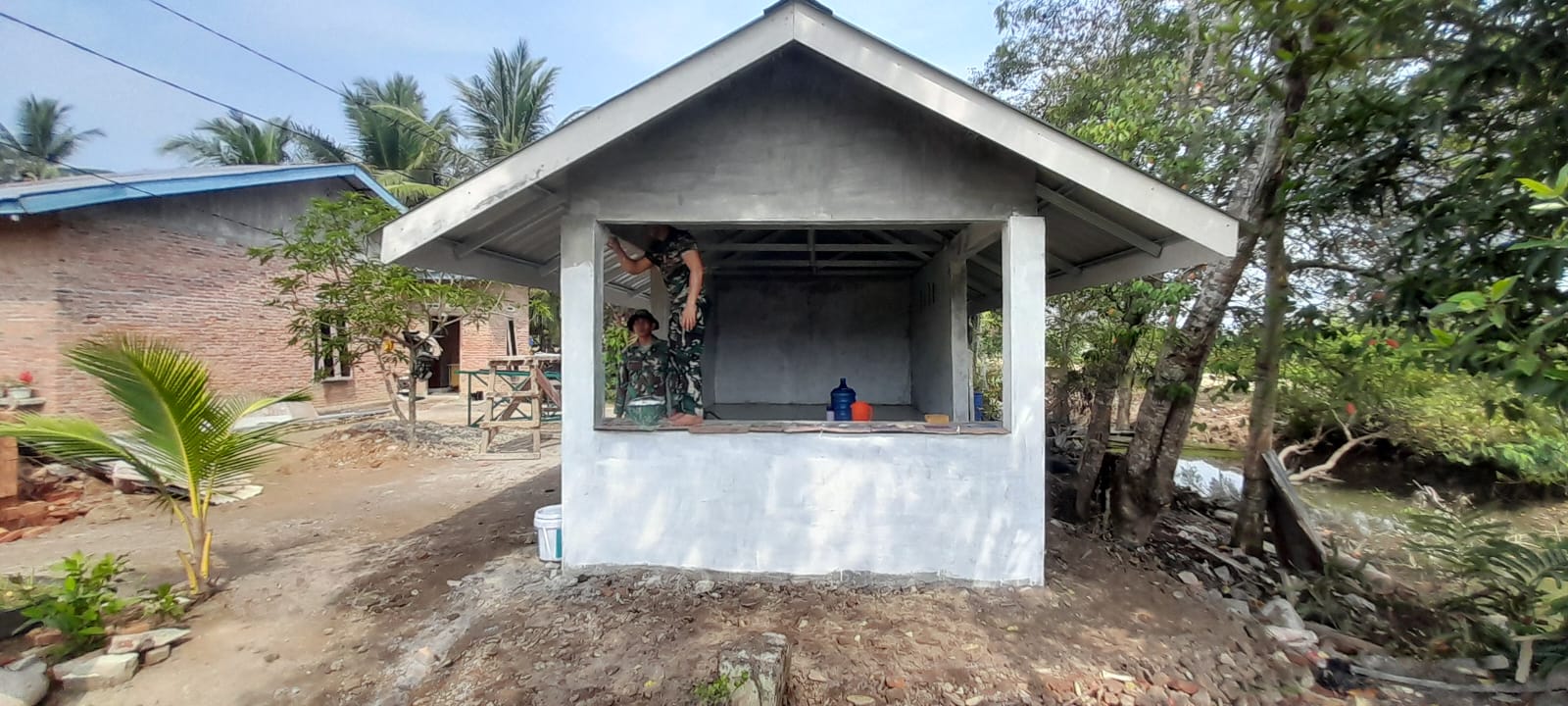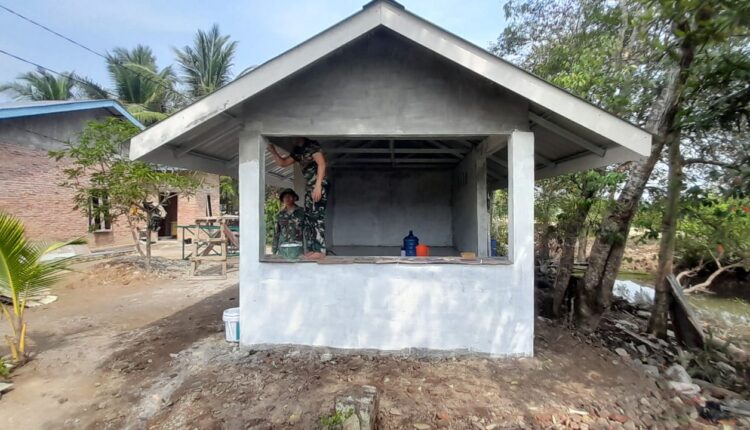 Dibawah Panas Terik Matahari,Satgas Kebut Pembangunan Pos Kamling Desa Pasar Rawa,Hasilnya 96%