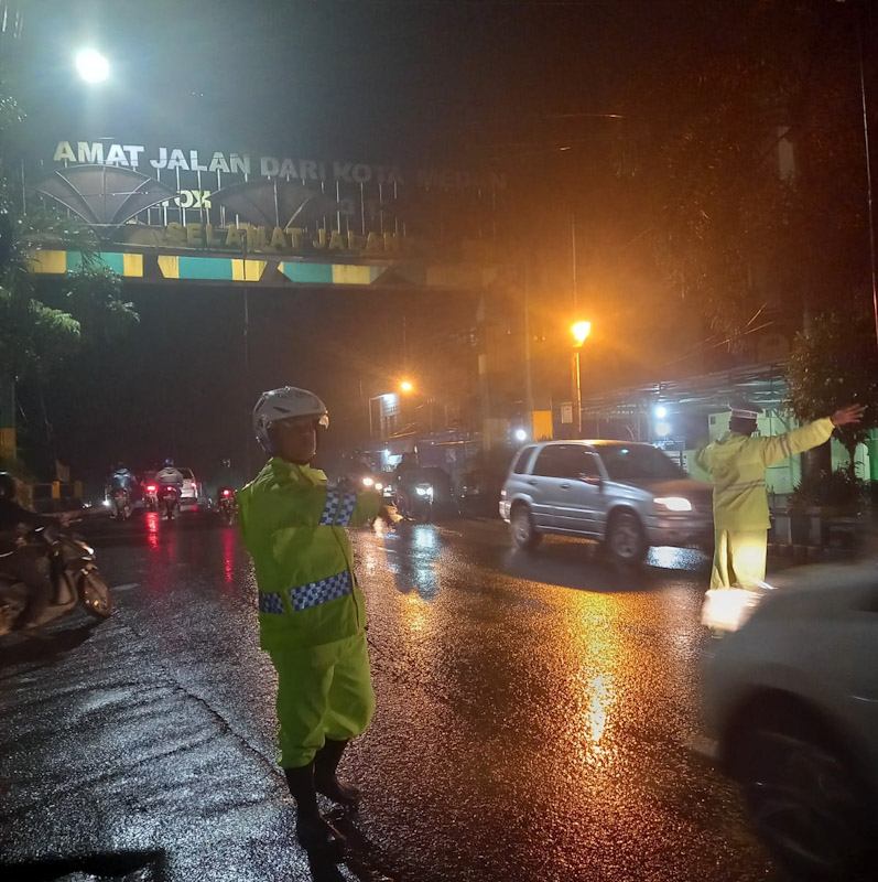 Personil dalam pelaksanaannya tetap semangat walaupun dalam gurun hujan. Arus lalin terpantau lancar baik yang melintas dari arah Tembung menuju kota Medan maupun sebaliknya.