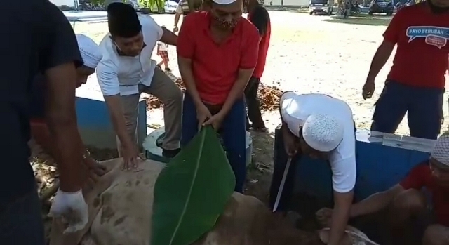TANJUNG MORAWA, Eksisnews.com – Di Hari Raya Idul adha 1441 H tahun ini, Keluarga Besar Dinas pendidikan Deli Serdang, menyembelih 21 ekor sapi kurban, dari 139 peserta kurban, yang terdiri dari para kepala sekolah, Kordinator wilayah kecamatan (koorwilcam), staf dinas, dan Kepala dinas Pendidikan Deli Serdang. Penyembelihan sapi sapi kurban tersebut dilaksanakan di halaman Sekolah Menengah Pertama Negeri (SMPN) 4 Tanjung Morawa Sabtu, (1/8/2020) pagi.