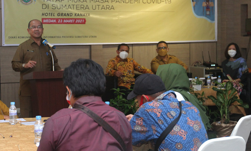 Kegiatan tersebut dibuka langsung Kepala Dinas Kominfo Sumut Irman Oemar didampingi Kabid Pengelolaan Komunikasi Publik Abdul Aziz Batubara serta sejumlah pejabat lainnya. Turut hadir sejumlah narasumber yakni dr Inke Nadia Lubis (Satgas Covid-19 Sumut), Prof Syaifuddin (Kepala Dinas Pendidikan Sumut), Abdul Rahim Siregar (Komisi A DPRD Sumut), serta moderator Zulfikar Tanjung, bersama para wartawan unit Pemprov Sumut.