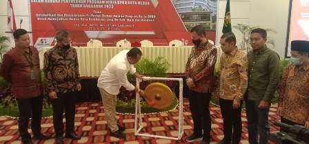 Diakhir sambutannya, Wakil Walikota Medan langsung membuka Rapat Kerja DPRD Kota Medan, dengan memukul gong dan diakhiri foto bersama.