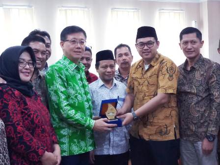 Usai melakukan diskusi, kedua pihak saling tukar cinderamata dan foto bersama.(ENC-2)