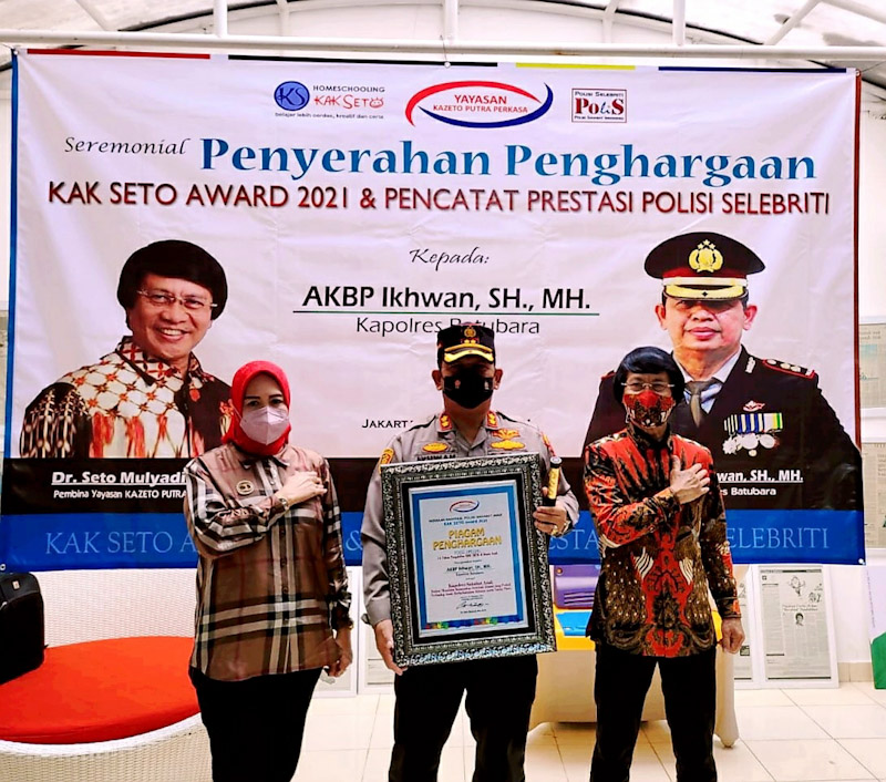 Dr. Seto mulyadi mengatakan atas nama Lembaga Perlindungan Anak Nasional mengundang Sosok Pejuang Duhafa ke Jakarta dan Memberikan Piagam penghargaan kepada Kapolres Batubara sebagai bentuk terimakasih dan apresiasi setinggi tingginya.