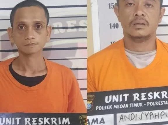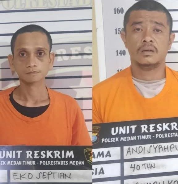 Kedua pelaku yakni Eko Septian alias Kakek (35), warga Jalan Veteran, Kelurahan Gang Buntu, dan Andi Syahputra Lubis alias Andi Lau (40), warga Komplek PJKA Jalan Gaharu, Kecamatan Medan Timur.