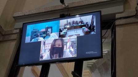 EKSISNEWS.COM, Medan – Ketua Majelis Hakim, Sri Wahyuni Batubara, SH, MH menegur dua penuntut umum saat di sidang lanjutan dua terdakwa mantan Pemimpin Divisi Treasur Bank Sumut, Maulana Akhyar Lubis dan mantan Direktur Kapital Market pada MNC Sekuritas, Andri Irvandi yang digelar di Ruang Cakra 2 Pengadilan Negeri (PN) Medan, Kamis (6/8/2020).