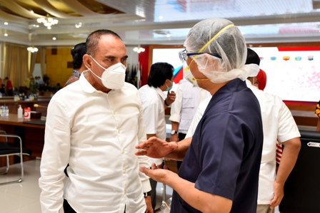 EKSISNEWS.COM, Medan – Gubernur Sumatera Utara (Gubsu) Edy Rahmayadi kembali mengajak seluruh dokter dan tenaga kesehatan sebagai garda terdepan memerangi pandemi Covid-19 di Sumut, untuk bergandengan tangan dan memberikan masukan yang positif kepada pemerintah dalam penanganan Covid-19. Sehingga penyebaran Covid-19 yang berdampak pada seluruh sendi kehidupan dapat segera diatasi.