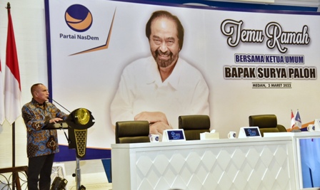 Hal tersebut disampaikan Edy Rahmayadi pada acara ramah tamah dan makan malam bersama Ketua Umum Partai NasDem Surya Paloh, serta Pengurus Partai NasDem Sumut di Auditorium DPW Partai NasDem Sumut Jalan Prof HM Yamin Medan, Rabu (2/3/2022) malam. Kegiatan ini serangkaian dengan Rapat Koordinasi Wilayah (Rakorwil) Partai NasDem Sumut.