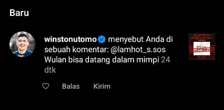 “Wulan bisa datang dalam mimpi 24 dk,” ujar Winstonutomo menjawab komentar Lamhot di Instagram.(ENC-2).