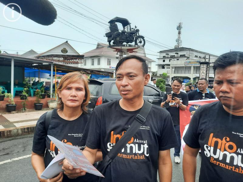 Forum Wartawan Pemprov Sumut Bagi Brosur Sosialiasi Pemutihan Denda Pajak Kendaraan Bermotor di Depan Balai Kota Siantar
