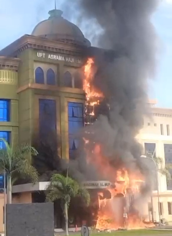 Api dengan cepat meluas menjilati bagian depan Asrama Haji Medan. Warga masyarakat yang berada dalam lingkungan Asrama Haji berlarian dan berupaya memadamkan api.