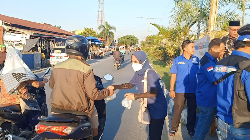 Usai Al Fatihah dipanjatkan, langsung dilaksanakan pembagian takjil kepada pengendara dan masyarakat yang melintas di jalan tersebut.