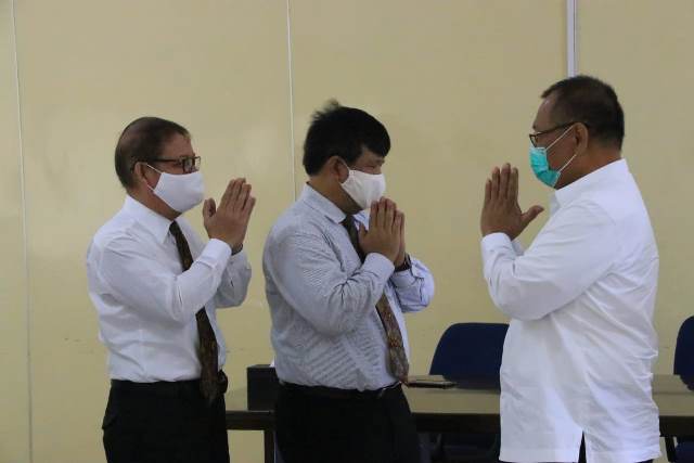 Kepada Plt Wali Kota, Plt Rektor Unika St Thomas Posman Sibuea mengatakan, Unika ST Thomas sejak 17 Maret telah melakukan sejumlah upaya untuk memutus mata rantai penyebaran Covid-19 di lingkungan kampus. Selain menerapkan perkuliah dengan sistem daring, juga menerapkan wajib masker di lingkungan kampus. Kemudian menyediakan wastefal untuk cuci tangan dengan air mengalir dan sabun, serta tidak memperkenankan mahasiswa berkumpul. “Kita mengikuti semua protokol kesehatan yang telah ditetapkan pemerintah untuk memutus mata rantai penyebaran Covid-19 di lingkungan kampus,” jelas Posman.