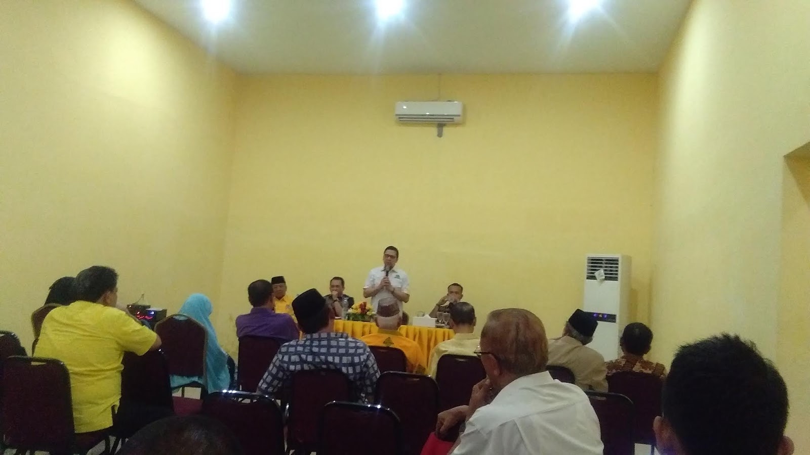 “Untuk itulah, dengan kita membuat pertemuan para caleg (calon legislatif) baik provinsi maupun di kabupaten / kota di 12 dapil (daerah pemilihan), kemudian kita lakukan rapimda (rapat pimpinan daerah), disetip kabupaten / kota kita bisa memetakan secara konkrit dan riil pada data faktual di lapangan, apa yang disebutkan selama ini oleh jajaran partai golkar bahwa partai golkar ini kuat menjanjikan , betul-betul ada diatas , ada secara faktual kita rasakan,” paparnya.