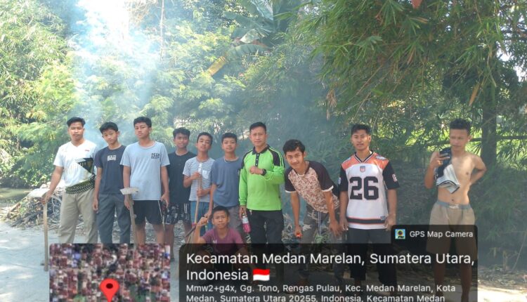 EKSISNEWS.COM, Medan – Warga Lingkungan 15 bersama Kepling Erdiansyah melaksanakan kegiatan gotong royong pada Sabtu, (1/2/ 2026) yang dimulai pukul 08.00 hingga 11.00 WIB. Kegiatan ini berlangsung di Kelurahan Rengas Pulau, Kecamatan Medan Marelan, dengan melibatkan partisipasi aktif warga sekitar sebagai bentuk kepedulian terhadap kebersihan dan penataan lingkungan.