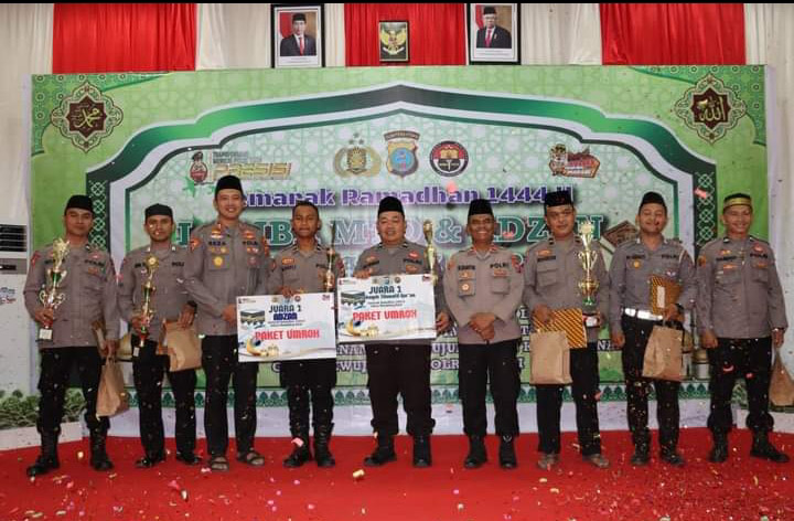 EKSISNEWS.COM, Panyabungan – Musabaqoh Tilawatil Quran (MTQ) dan lomba Adzan antar sesama personil Polres Mandailing Natal (Madina) resmi berakhir. Dua personel pangkat Aipda dan Bripda ke luar sebagai pemenang dan mendapat hadiah umrah gratis dari Kapolres Madina AKBP H.M Reza Chairul. A.S. S.IK., S.H., M.H.