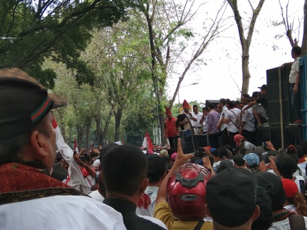 Aksi massa saat itu uga diterima anggta DPRD Prvisi Sumatera Utara untuk didengarkan aspirasiya di gedung dewan tersebut.(ENC-2)