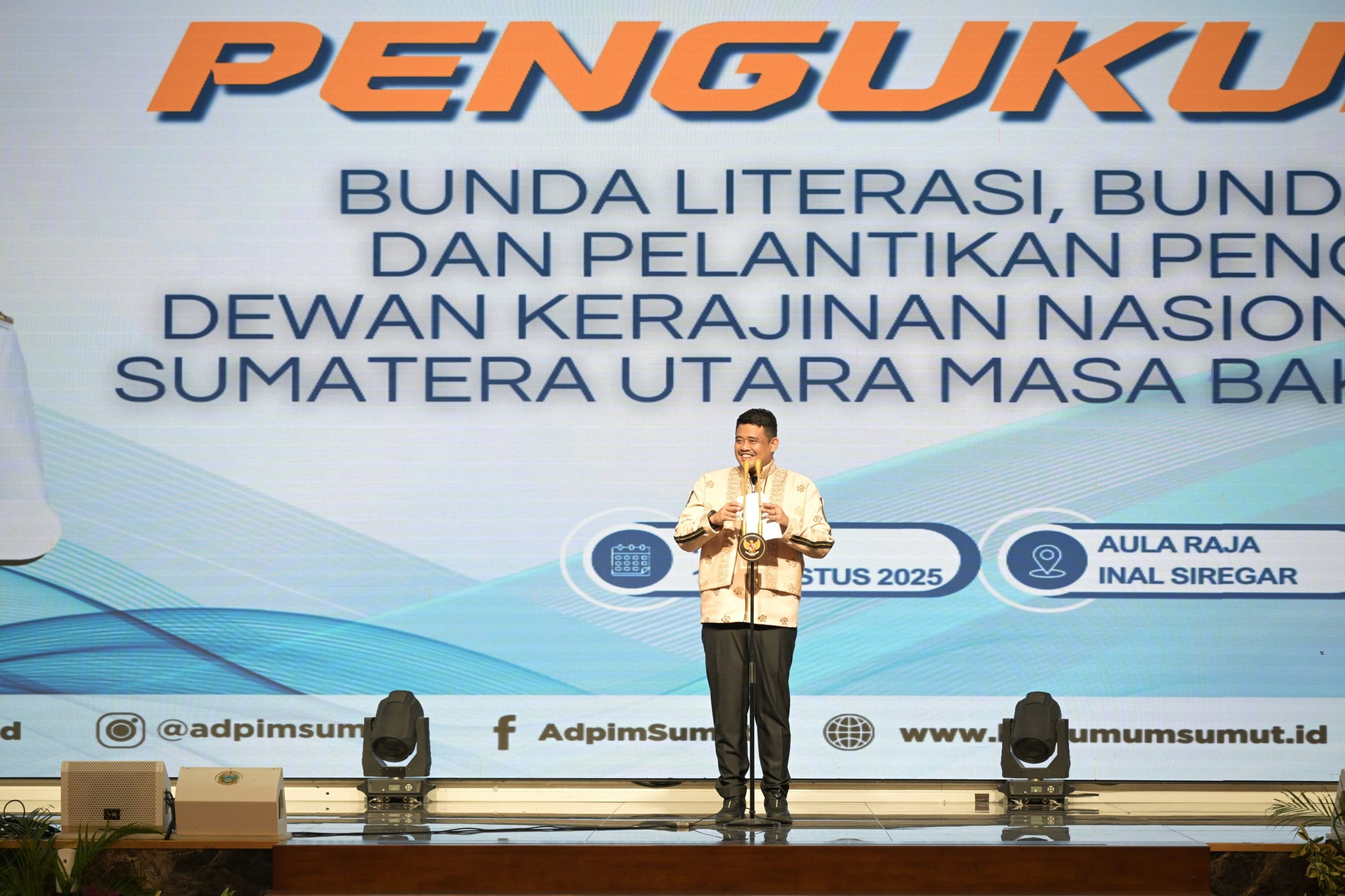 EKSISNEWS.COM, Medan – Gubernur Sumatera Utara (Sumut) Muhammad Bobby Afif Nasution mengukuhkan Kahiyang Ayu sebagai Bunda Literasi Sumut dan Bunda PAUD Sumut. Kegiatan tersebut berlangsung di Aula Raja Inal Siregar, Kantor Gubernur, Rabu (13/8/2025).