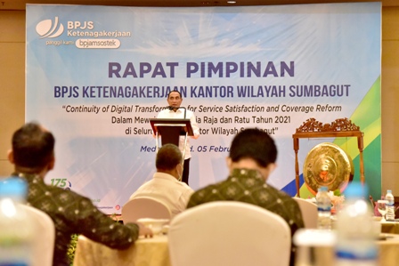 Hal itu disampaikan Gubernur saat menghadiri Rapat Pimpinan (Rapim) BPJS Ketenagakerjaan (BPJamsostek) di Hotel JW Marriot Jalan Putri Hijau, Medan, Kamis (4/2/2021). Hadir di antaranya Deputi Direktur BPJS Ketenagakerjaan Wilayah Sumbagut Panji Wibisana, dan para Kepala Cabang BPJS Ketenagakerjaan Kabupaten/Kota.