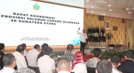Ini diungkapkan Gubernur Edy Rahmayadi saat rapat dengan Pengprov Cabor se-Sumut dan organisasi perangkat daerah (OPD) terkait di Aula Tengku Rizal Nurdin, Rumah Dinas Gubernur, Jalan Jenderal Sudirman Nomor 41 Medan, Jumat (21/1/2022). Diharapkan, pencarian talenta tersebut dilakukan hingga ke pelosok Sumut.