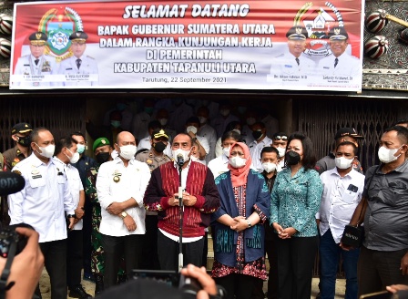 “Saya berusaha menyelesaikan persoalan yang ada. Untuk percepatan perbaikan jalan (provinsi), segera persiapkan timnya (perencanaan). Memang sekarang bukan waktunya untuk bicara yang enak-enak. Tetapi saya hadir di sini, karena saya mencintai rakyat,” ujar Gubernur saat menggelar kunjungan kerja (Kunker) ke Kabupaten Taput di Sopo Partukkoan Gedung Kesenian, Tarutung, Rabu (22/9/2021).