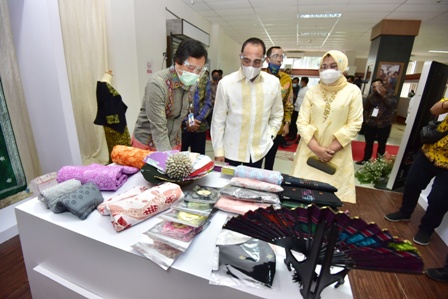 Gubernur Edy Rahmayadi yang hadir bersama Ketua TP PKK Sumut Nawal Edy Rahmayadi juga sempat berkeliling melihat berbagai hasil kerajinan UMKM yang dipamerkan. Antara lain berbagai hasil kerajinan kain dan aneka kopi unggulan Sumut.(ENC-2)