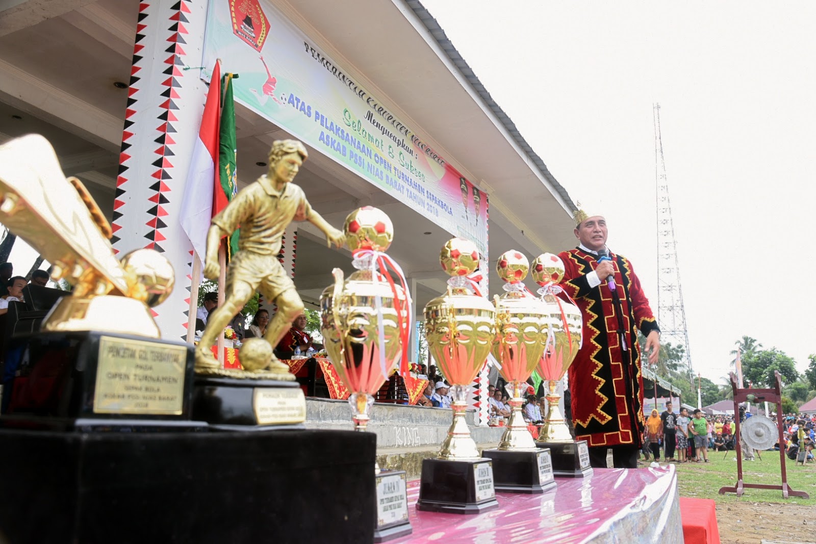 NIAS BARAT, Eksisnews.com – Gubernur Sumatera Utara (Gubsu) Edy Rahmayadi membuka secara resmi Open Turnamen Sepakbola Asosiasi Kabupaten (Askab) PSSI Nias Barat di Lapangan Bola Tetesua Kecamatan Sirombu Kabupaten Nias Barat, Rabu (31/10/2018). Turnamen tersebut diikuti 27 klub se-Kepulauan Nias dan akan berlangsung hingga Maret 2019.