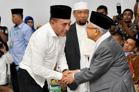 Pada kesempatan itu, Gubernur Edy Rahmayadi mengucapkan selamat datang kepada Ma’ruf Amin. Dia pun mengaku tidak sabar ingin mendengarkan bimbingan dari ulama besar Ma’ruf Amin. Karena, ulama merupakan sosok yang kaya ilmu, yang harus didatangi para umaroh. “Kita lah umaroh yang harus mendatangi para ulama, bukan sebaliknya,” ujarnya, yang disambut tepuk tangan meriah dari para hadirin.