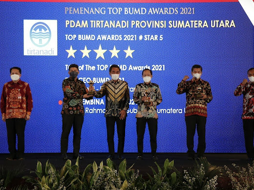 Penghargaan Gubsu sebagai TOP Pembina BUMD diterima oleh Asisten Perekonomian dan Pembangunan Sekdaprovsu Ir Arief S Trinugroho MT sedangkan penghargaan Dirut Kabir Bedi sebagai TOP CEO BUMD berikut penghargaan PDAM Tirtanadi TOP BUMD Awards 2021 diterima oleh Staf Ahli Direksi PDAM Tirtanadi Indar Muda Dongoran, Kepala Divisi (Kadiv) Sekretaris Perusahaan Humarkar Ritonga dan Kadiv Litbang Ewin Putra yang diserahkan pada malam acara puncak TOP BUMD Awards yang dilaksanakan oleh majalah Top Business bekerjasama dengan Institut Otonomi Daerah, Lembaga Kajian Nawacita Fakultas Ekonomi dan Bisnis Universitas Padjadjaran Bandung, acara puncak tersebut digelar di Hotel Rafless Jakarta, Jumat (10/9).