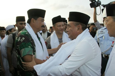 Panglima TNI dalam sambutannya mengatakan, Sumut merupakan barometer kestabilan di Indonesia Bagian Barat, sehingga TNI dan Polri perlu bijak melihat perubahan di Sumut. “Saya ingin berterimakasih kepada masyarakat Sumatera Utara, TNI dan Polri yang telah menjaga Pemilu berjalan dengan damai. Tentunya, tanpa kerja keras kita ini tidak akan terwujud,” kata Panglima TNI saat memberikan kata sambutan usai salat Magrib berjamaah.