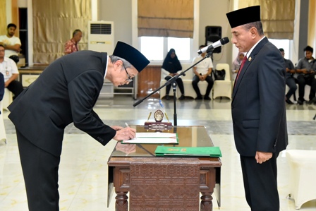 MEDAN, Eksisnews.com – Gubernur Sumatera Utara (Gubsu) Edy Rahmayadi melantik dr Khainir Akbar Yusuf Sp A sebagai Direktur Rumah Sakit Umum (RSU) Haji Medan, Rabu (22/5/2019), di Aula Raja Inal Siregar Lantai II Kantor Gubernur Sumut Jalan Diponegoro No 30 Medan. Pelantikan ini berdasarkan Surat Keputusan Gubernur Sumut Nomor 821.23/1662/2019 dan Surat Nomor 011/JPTP/V/2019 tentang Hasil Seleksi Calon Direktur RSU Haji Medan.