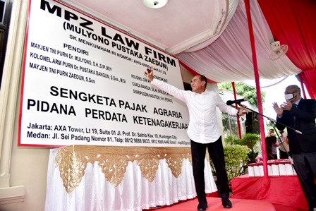 Hal ini disampaikan Edy Rahmayadi saat meresmikan Kantor MPZ Law Firm di Jalan Sei Padang Nomor 81 Medan, Selasa (3/11/2020). Hadir dalam acara tersebut, pendiri MPZ Law Firm Mayjen TNI Purn Mulyono, Kolonel Arm Purn Pustaka Bangun, Mayjen TNI Purn Zaedun, Pangdam I/BB Mayjen TNI Irwansyah, Kepala Biro Humas dan Protokol Setdaprov Sumut Hendra Dermawan Siregar, serta perwakilan Polda Sumut.