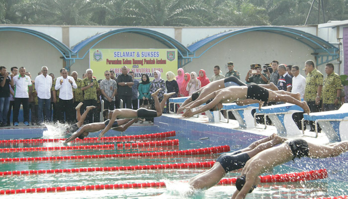 Peresmian tersebut juga ditandai dengan pelepasan atlet eksibisi renang nomor 50 meter gaya dada oleh Gubernur Sumatera Utara Edy Rahmayadi.