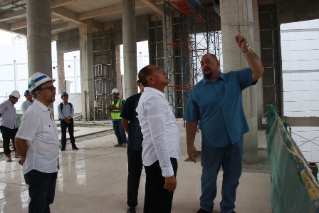 Didampingi Wakil Ketua Panitia Pembangunan Masjid Agung Musa Idishah, Ketua Tim Teknis Pembangunan Masjid Trio Pahlawan serta Ketua BKM Masjid Agung Azwir Ibnu Aziz, Gubernur memeriksa setiap kemajuan pembangunan di tiap lantai. Sesekali berhenti di satu titik dan membincangkan hal-hal teknis.